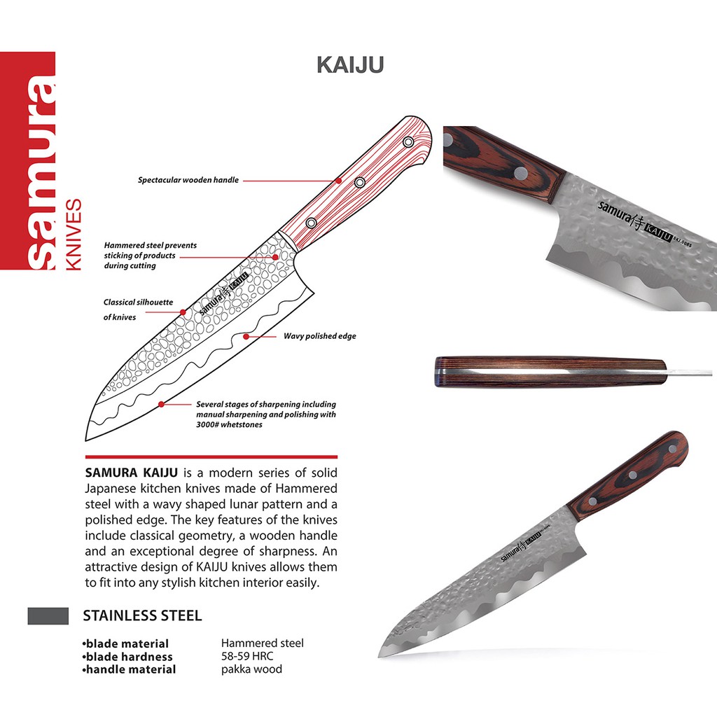 Samura KAIJU Santoku 7.1" Japanese Ches knife. Made in Japan. Authentic Japanese Hammered steel AUS-8 59HRC
