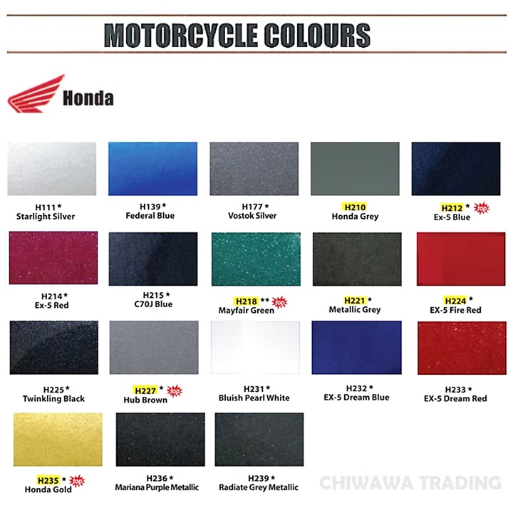 Samurai 400mL Honda Motorcycle Colours High Gloss Clear Coat Tone Aerosol Spray Paint Motor Cat Primer