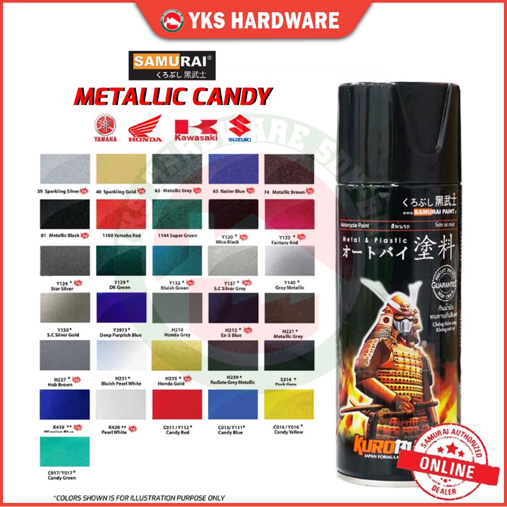SAMURAI SPRAY PAINT - METALLIC/CANDY/YAMAHA/HONDA/KAWASAKI/SUZUKI - MOTORCYCLE COLOURS 400ml