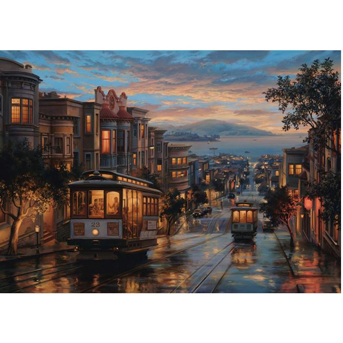 San Francisco Tram Sunset Painting DIY Oil Paint By Numbers On Canvas Home Deco USA Color Water Brush Art Digital Sun