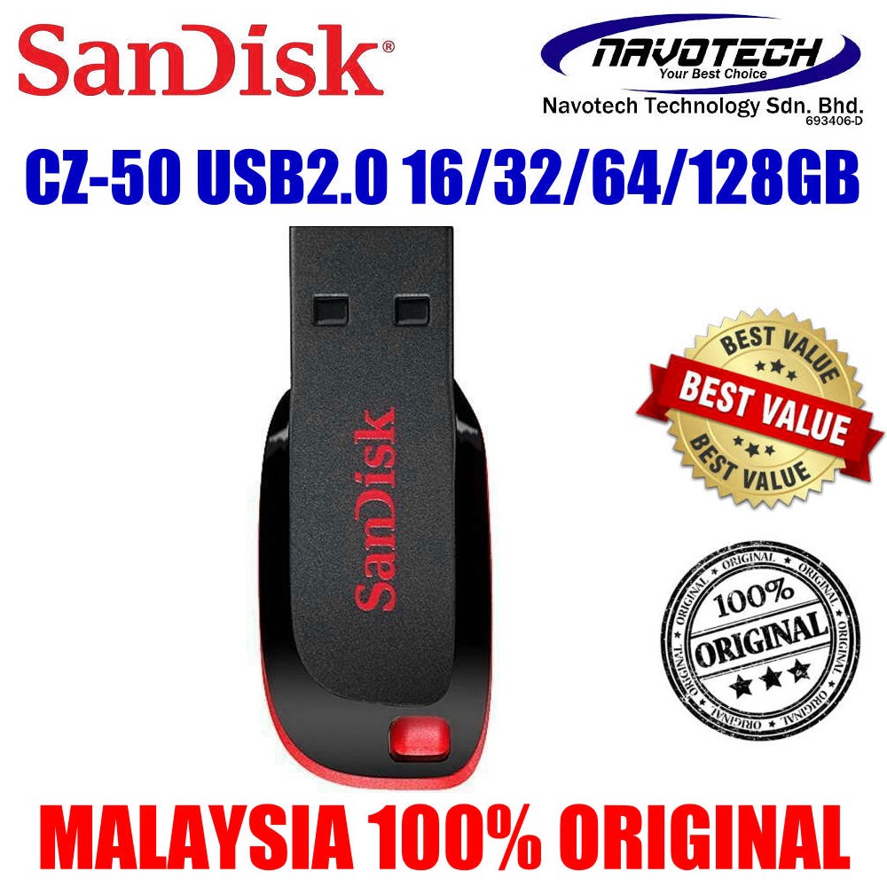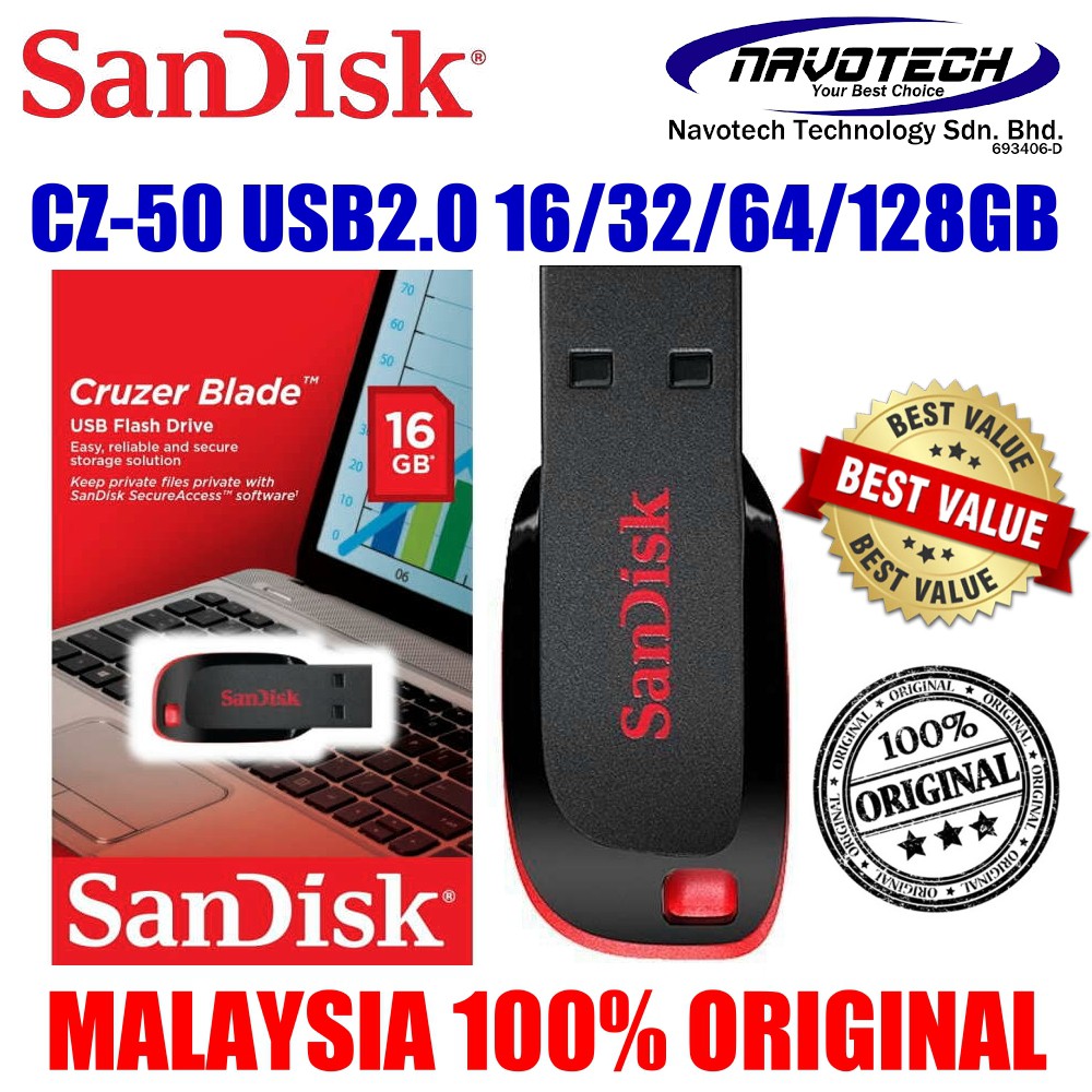 SanDisk CZ50 Cruzer Blade USB 2.0 Flash Drive (16GB/32GB/64GB)