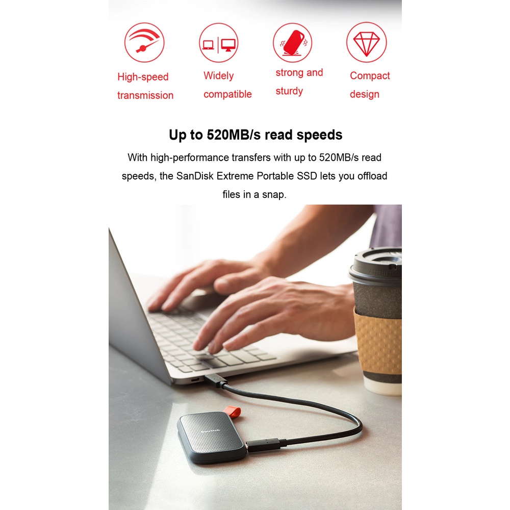 SanDisk E30 External Portable SSD 520MBS USB 3.2 Type-C 480GB 1TB 2TB Hard Disk