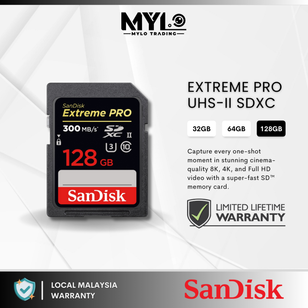 SanDisk Extreme Pro 300MB/S SD Card ( 32GB / 64GB / 128GB ) SDSDXDK