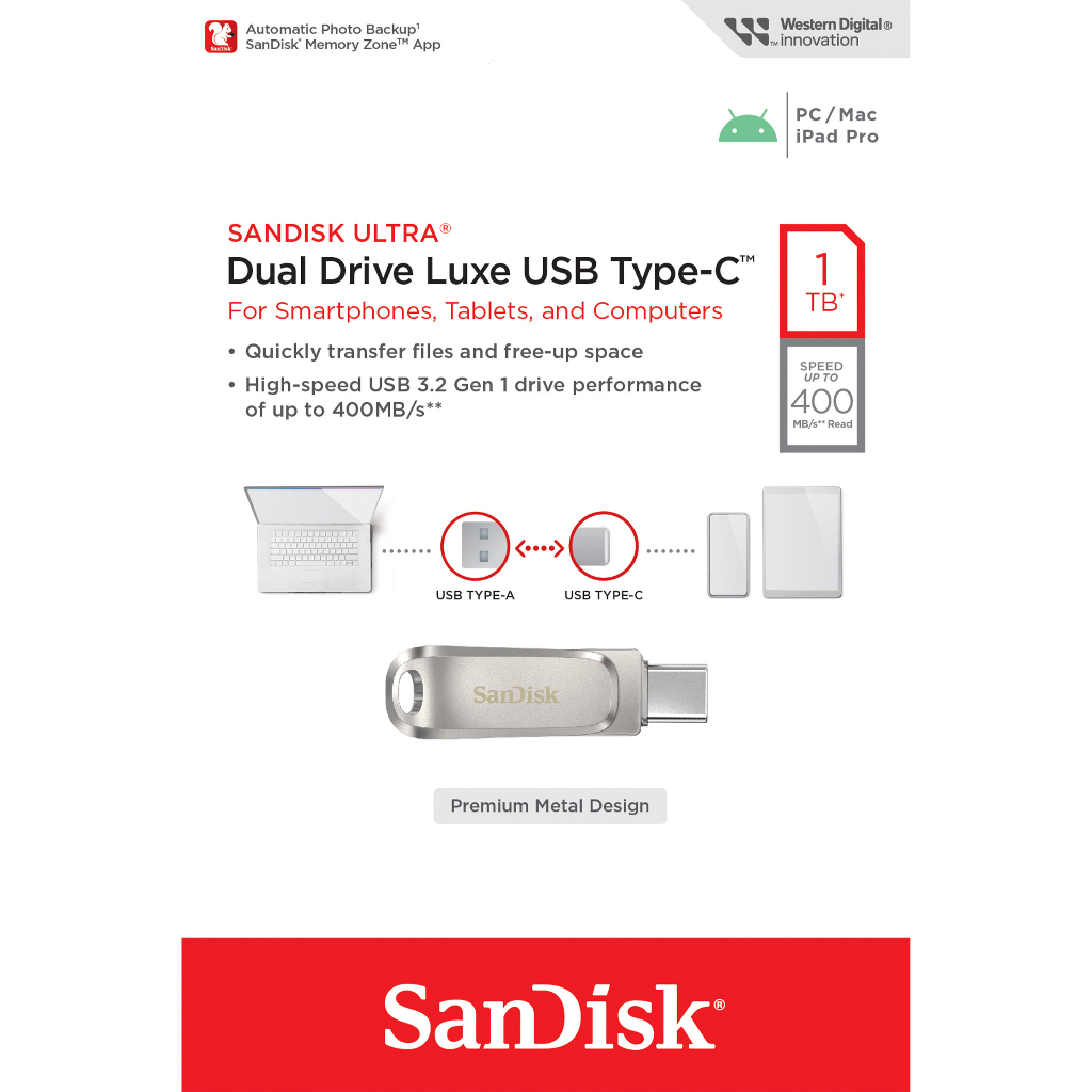 SanDisk SDDDC4 Ultra Dual Drive Luxe USB Type-C Flash Drive (32GB/64GB/128GB)