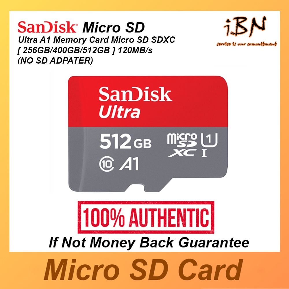 SanDisk Ultra A1 Memory Card Micro SD SDXC - 128GB/256GB/400GB/512GB 150MB/s (NO SD ADPATER)