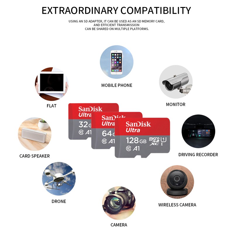 SanDisk Ultra A1 Micro SD Memory Card 140MB/s Class 10 For Phone/Dashcam/IP Cam/Tablets (128GB/64GB/32GB/16GB) MicroSD
