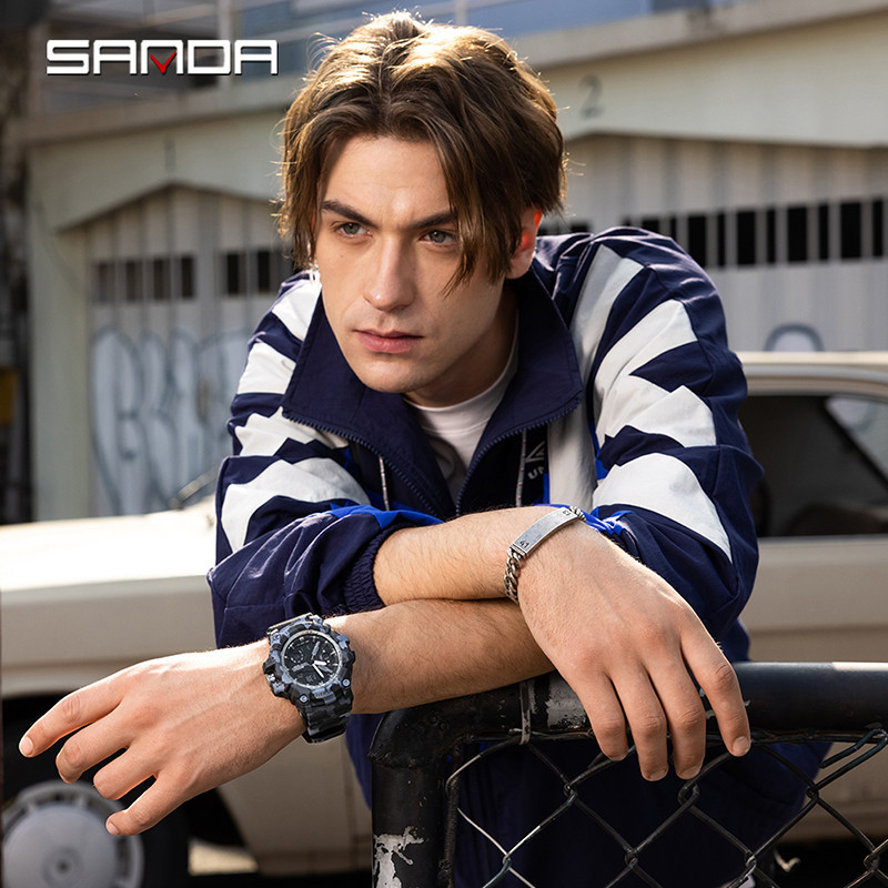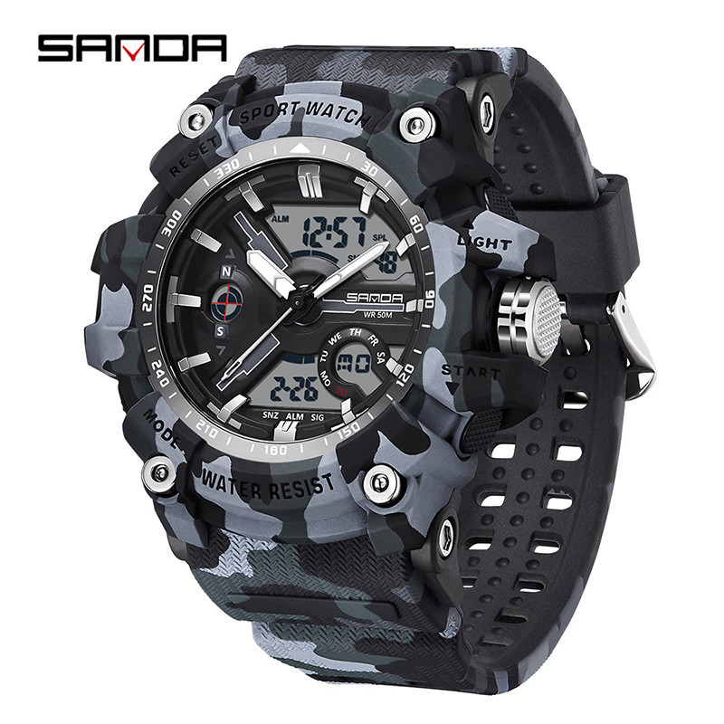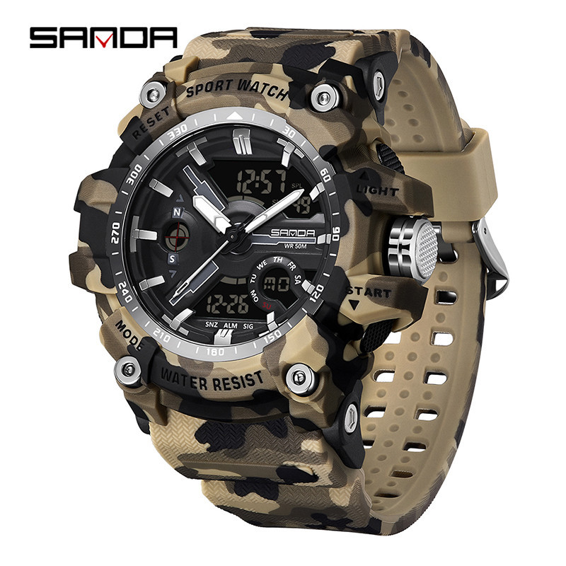 Sanda Fashion City Outdoor Waterproof Sports Military Camo Multi functional Men's Watch Gift SD3355