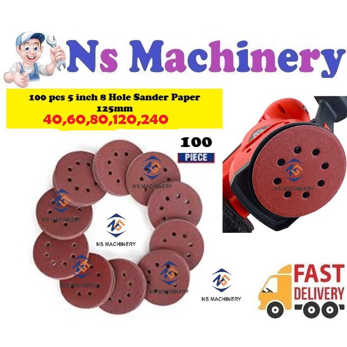 Sander Paper/100pcs Sanding Disc 5 inch 125mm Orbital Sand Paper 8 Holes DIY Abrasive Hook and Loop Polishing