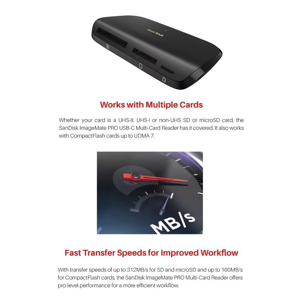 Sandisk Imagemate Pro USB3.0 Type-C Card Reader (Support MicroSD,SD Card,CF Card)