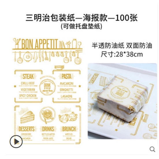 Sandwich Wrap paper bread blotting paper sandwich 100pcs (28x38cm)