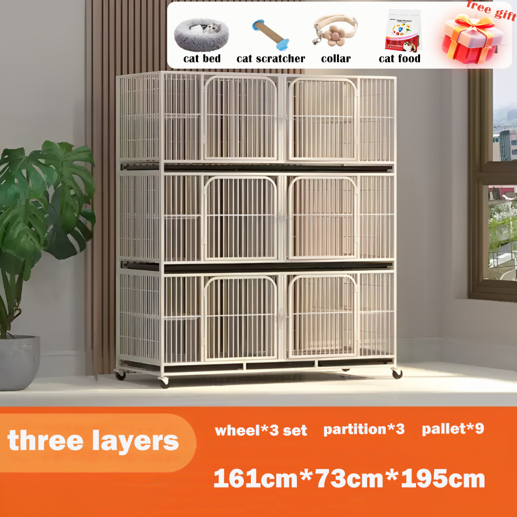 Sangkar Kucing Besar Platform Cat House Cat Villa White for Many Cats Villa Platform Rumah Kucing Cat Cage 1/2/3 Level Metal Steel Sangkar Villa
