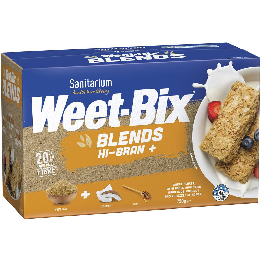 Sanitarium Weet-Bix Blends, Hi-Bran+ Breakfast Cereal 750g