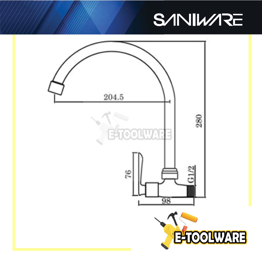 Saniware SWP-BR-3464 Kitchen Wall Sink Tap