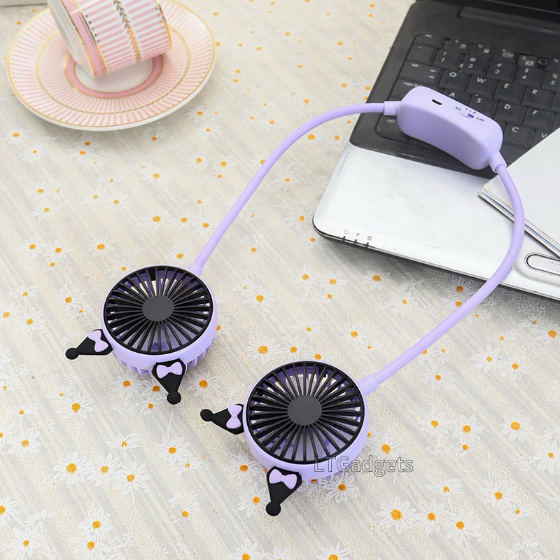 Sanrio Hanging Neck Fan Hello Kitty Kuromi Cinnamoroll Cartoon Anime Electric Fan Usb Charging Foldable Fan