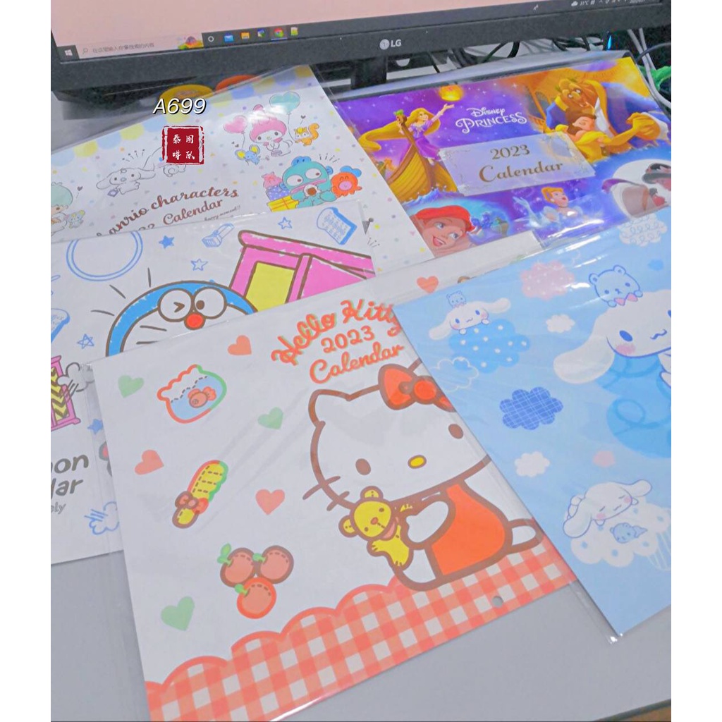 Sanrio Japan Kitty Melody Kuromi Cinnamoroll Pompompurin Doraemon Disney Princess 2023 Wall Calendar / Desk Calendar