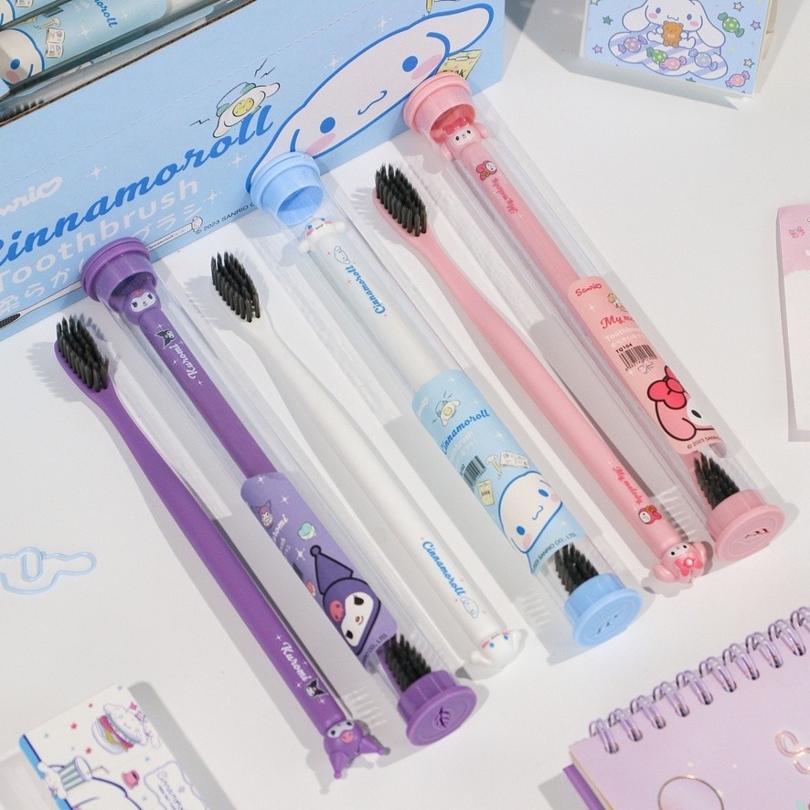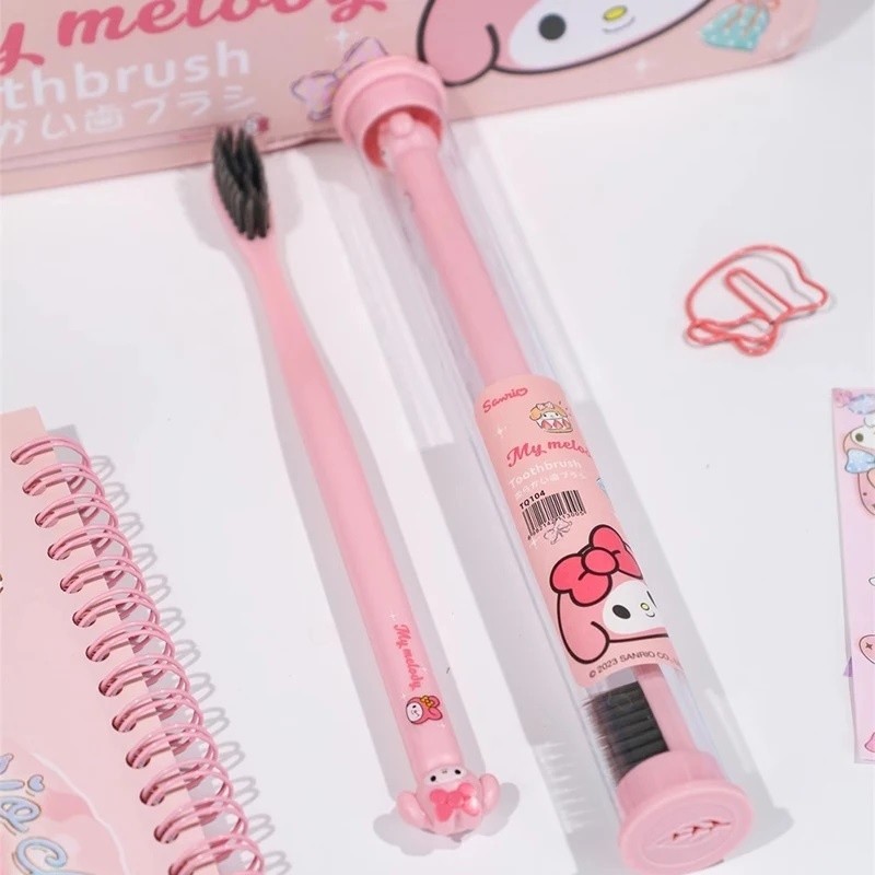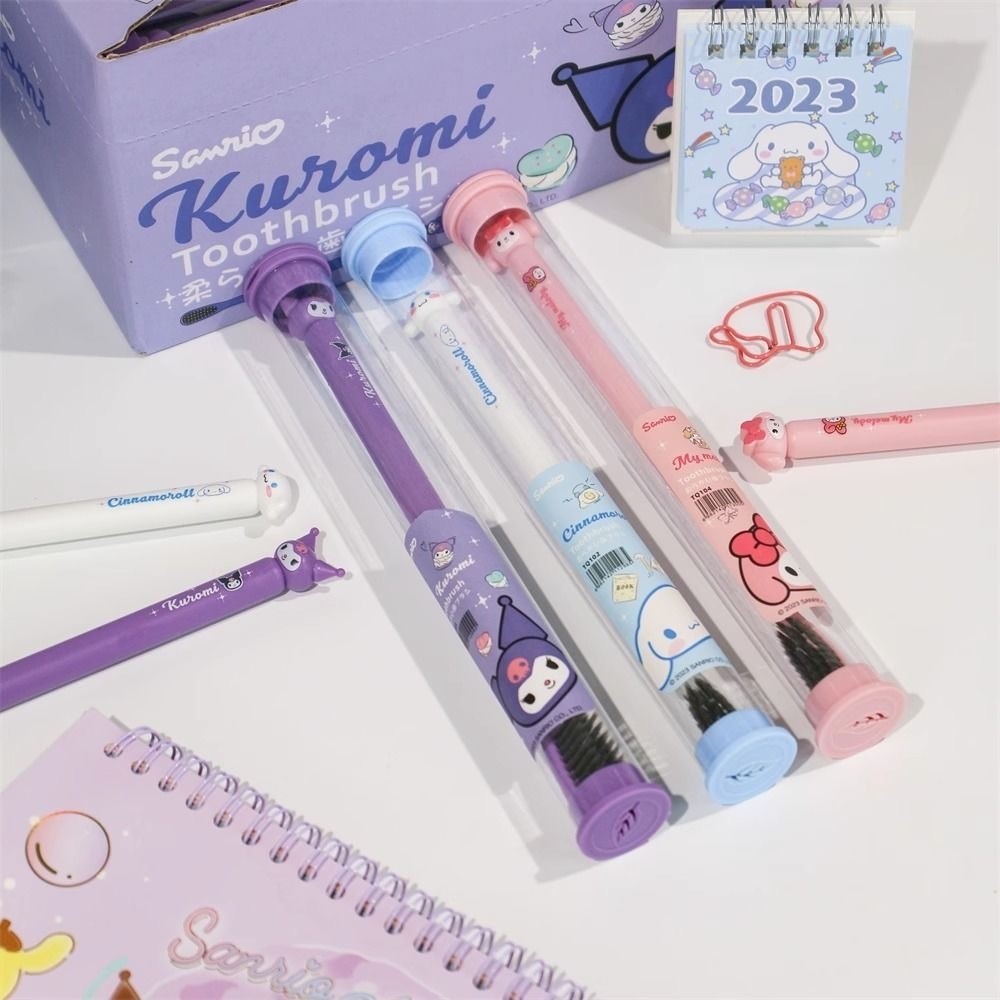 Sanrio Toothbrush Kuromi Melody Cinnamoroll Hello Kitty Toothbrush Travel Portable Ultra Fine Soft Bristle Toothbrush for Kids Adults