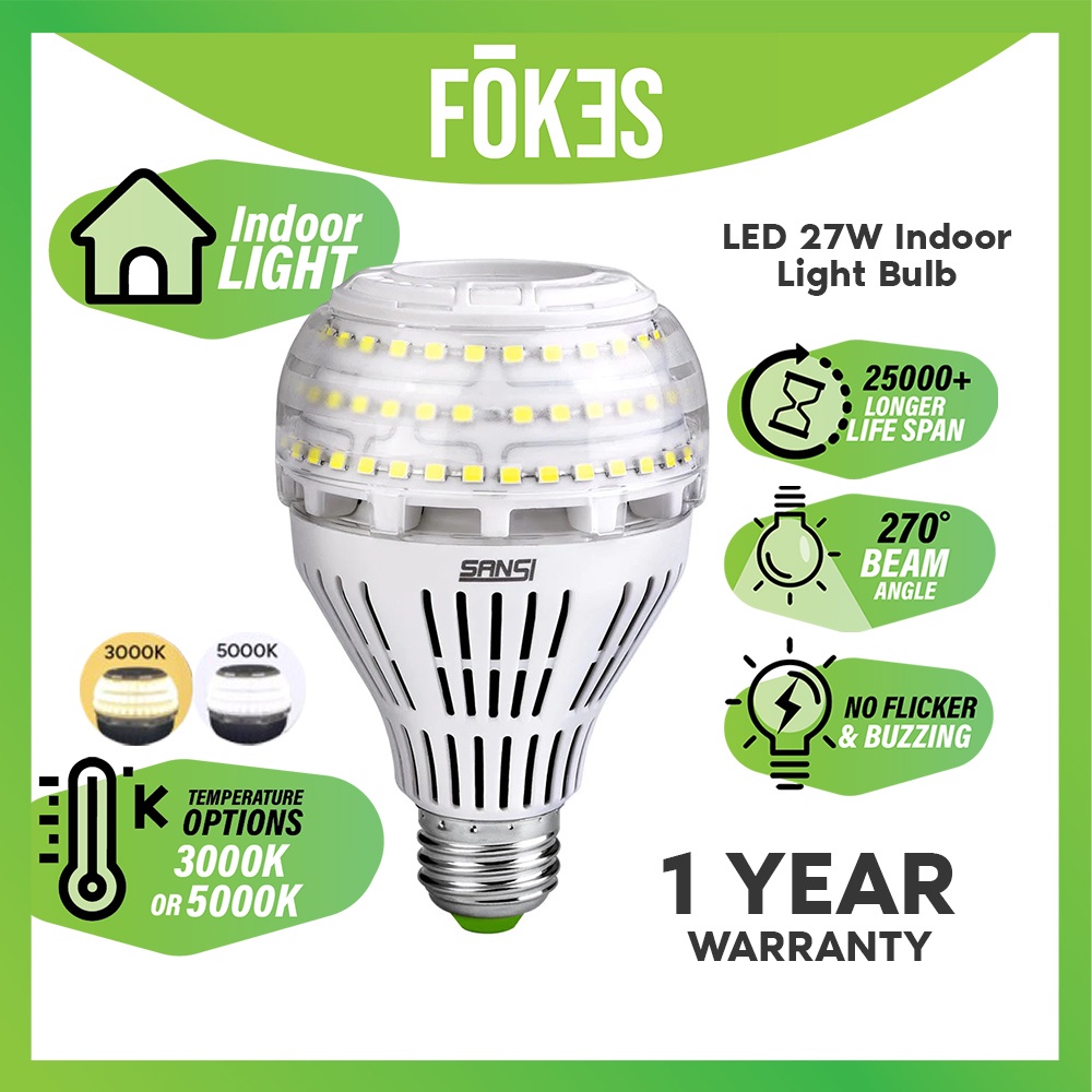 Sansi 27W LED Super Bright Energy Saving Light Bulb E27 4000 Lumens 3000K/5000K for Home Indoor Light [Ready Stock]