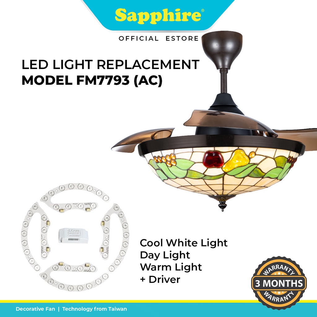 Sapphire Ceiling Fan LED Light / Driver Replacement Spare Part | Light Kit | Panel LED Light | Lampu Siling Bulat