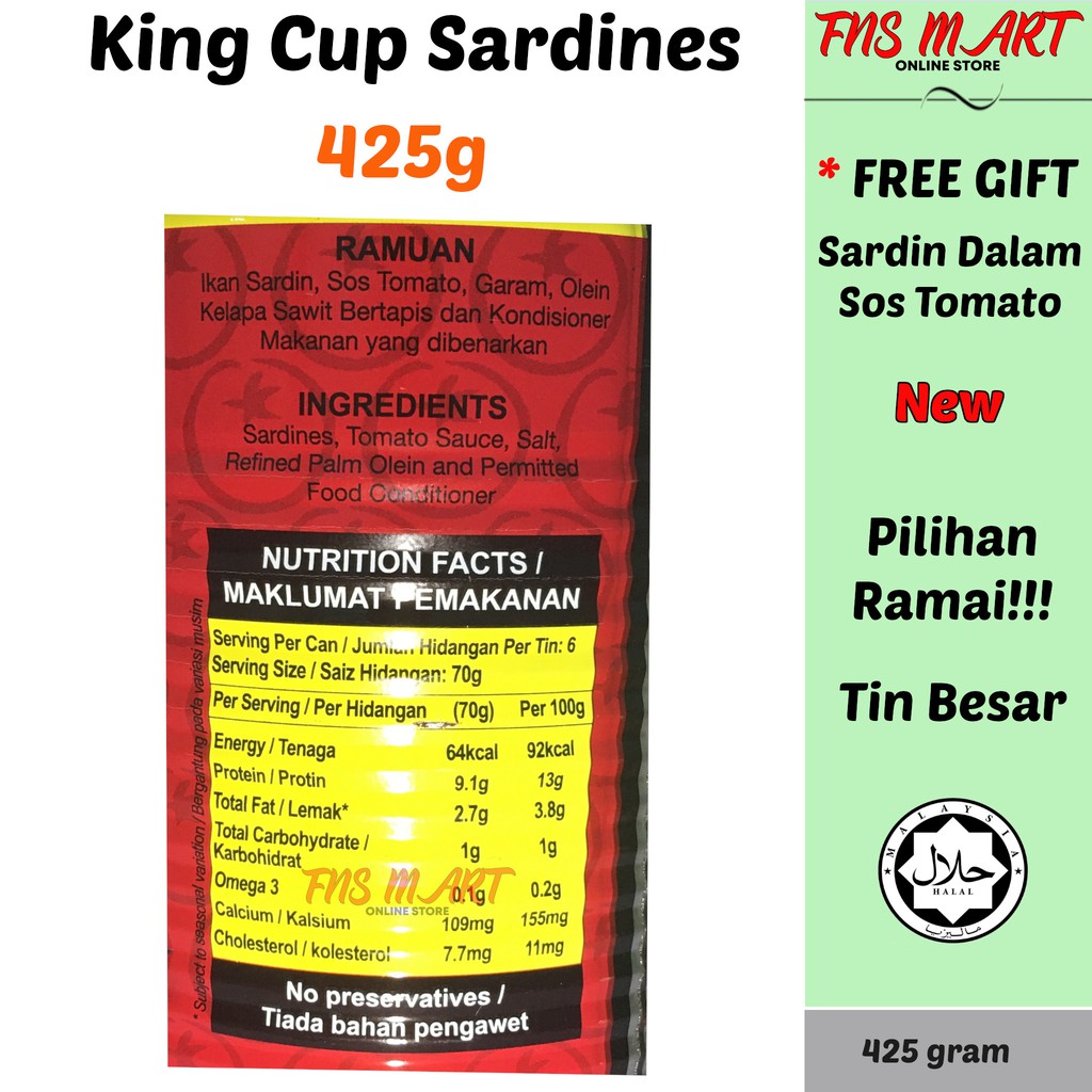 Sardine King Cup Tin Besar Sardin Dalam Sos Tomato Kingcup Sardines In Tomato Sauce 425g
