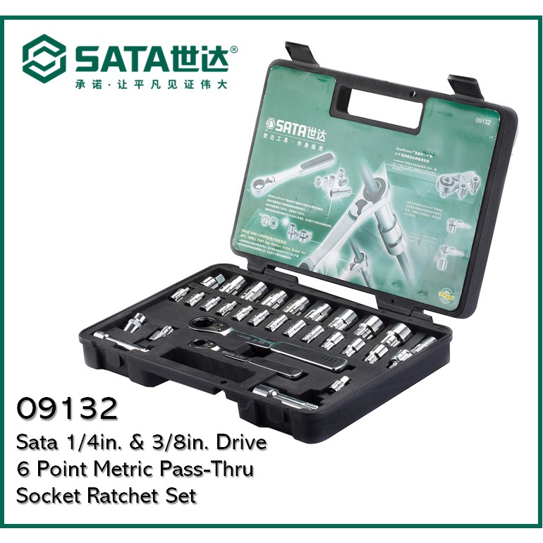 Sata 09132 30-Pcs 1/4 in. & 3/8 in. Drive 6 Point Metric Pass-Thru Socket Set / Rachet Set