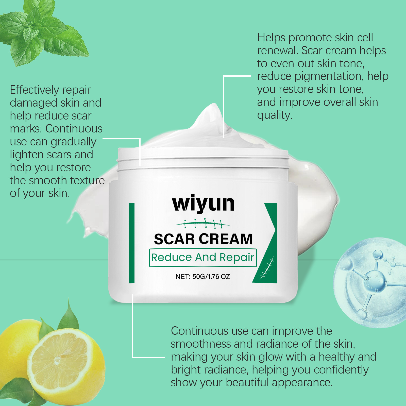 Scar Removal Cream, Advanced Scar Cream for Surgical Scars, Acne Scars, C-Section, Burns, Stretch Marks, Silicone Gel for Scars 50g