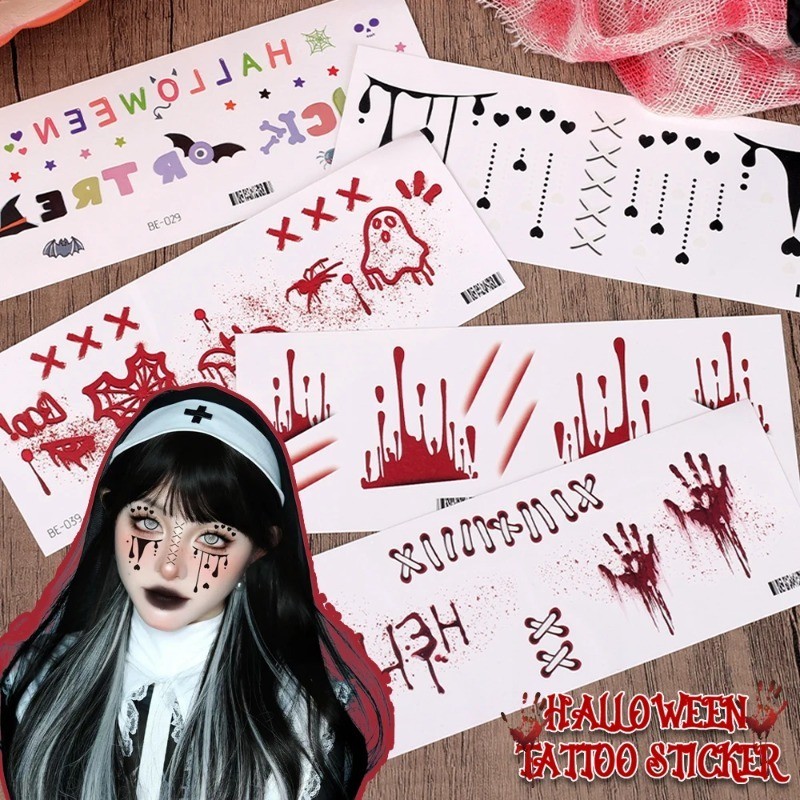 Scary Halloween Face Stickers Temporary Fake Wounds 3D Gory Bloody Realistic Waterproof Body Art DIY Makeup Tattoo Appliques