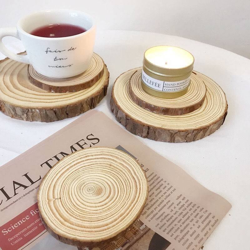 Scented Candle Plate Wood Base Hand Painting Wood Slice Candle Coaster Natural Pine Candle Base