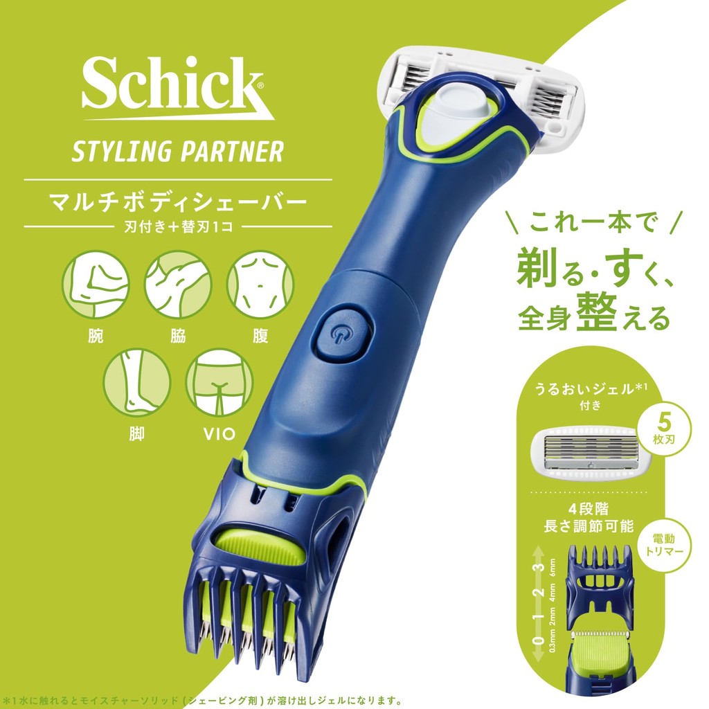 Schick Physique Multi Body Shaver (with Blade + 1 Replacement Blade) Trimmer with Skin Guard for Men, VIO, Blue, 5 Blades