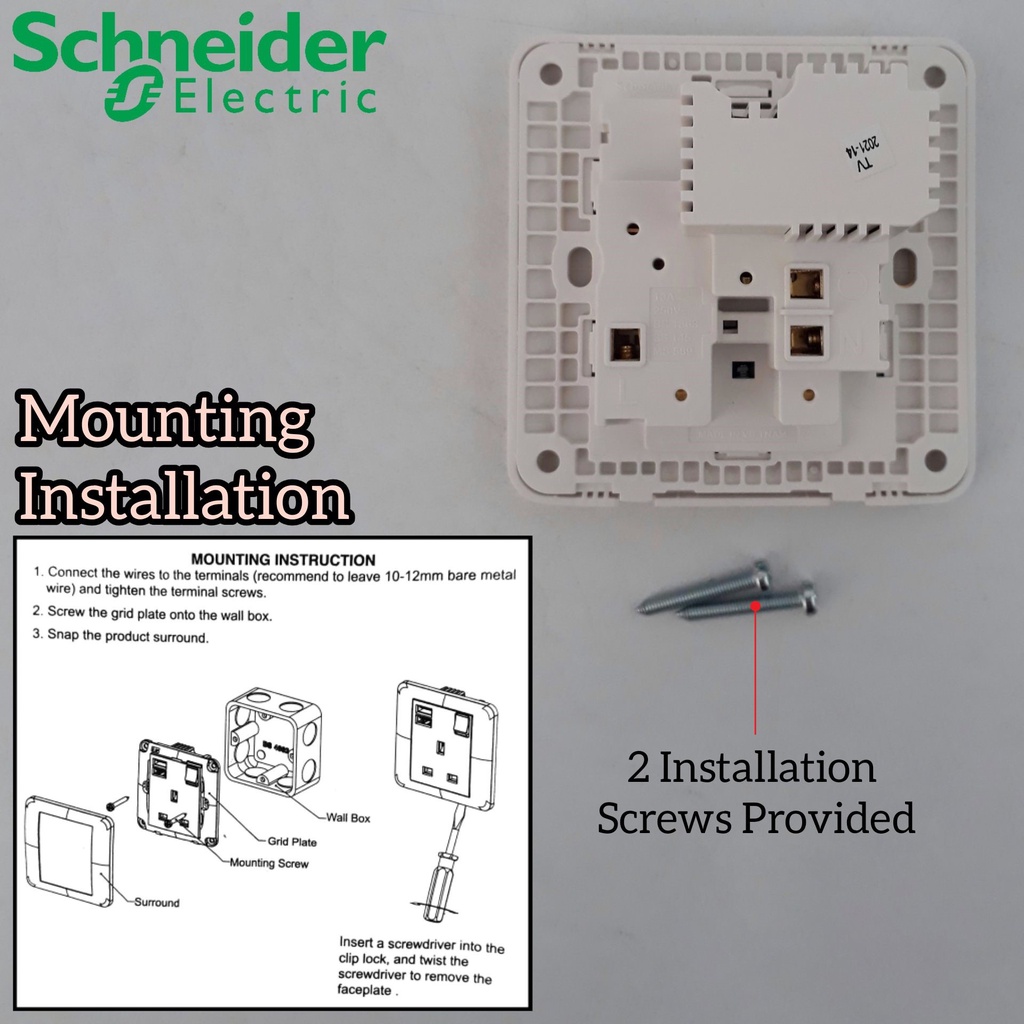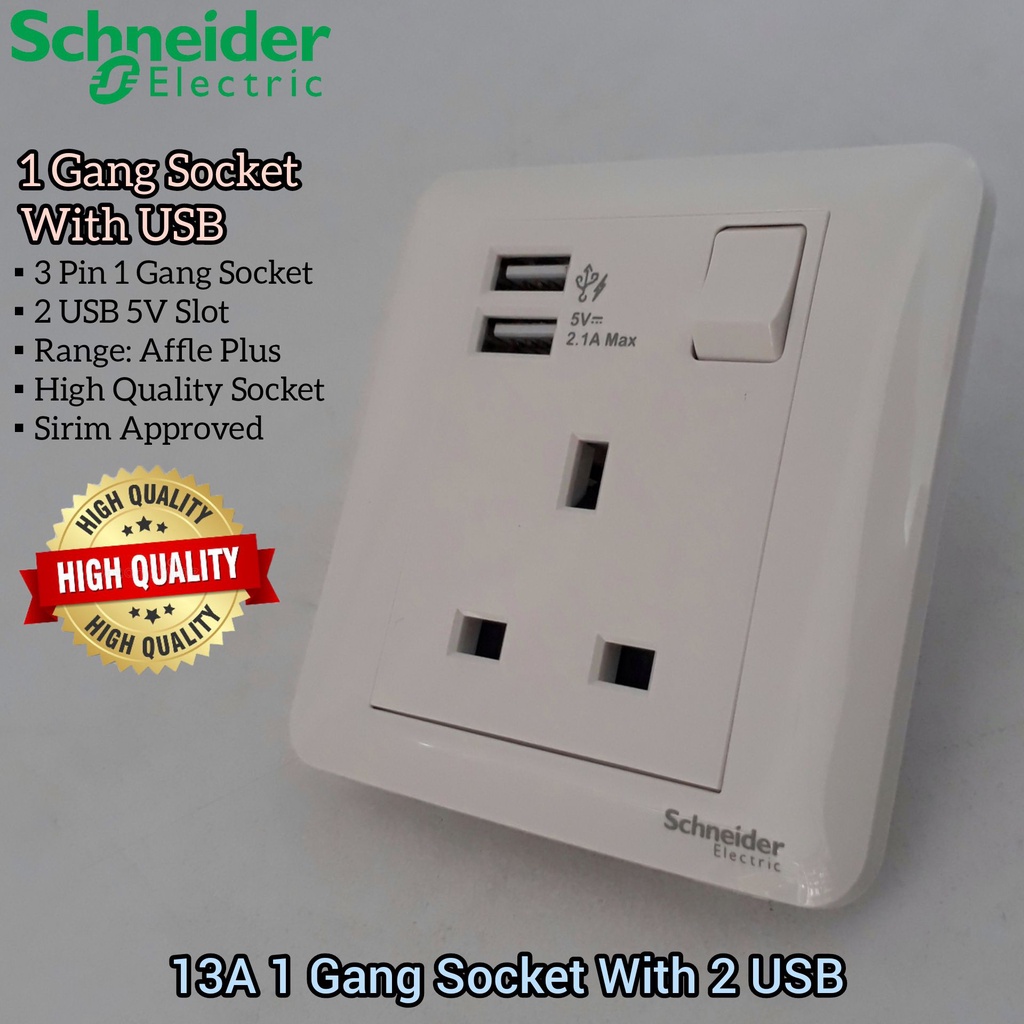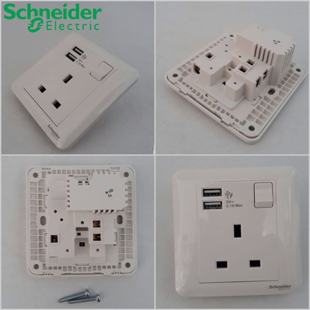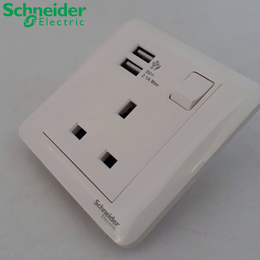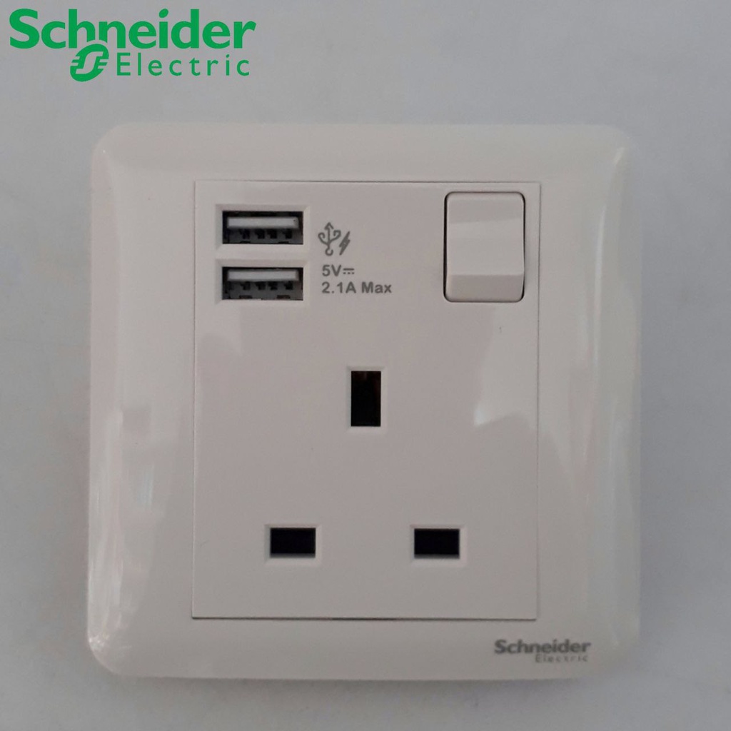 Schneider 13A 1 Gang Switch Socket With 2.1A USB For House Electrical Switch