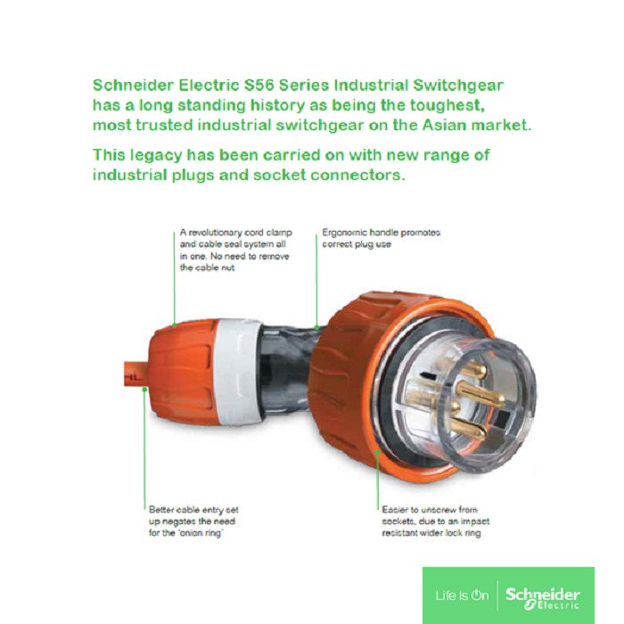 Schneider Electric S56 Angled Plug 32A 5 Round Pin IP66 (Orange) [S56PA532EO_G15]