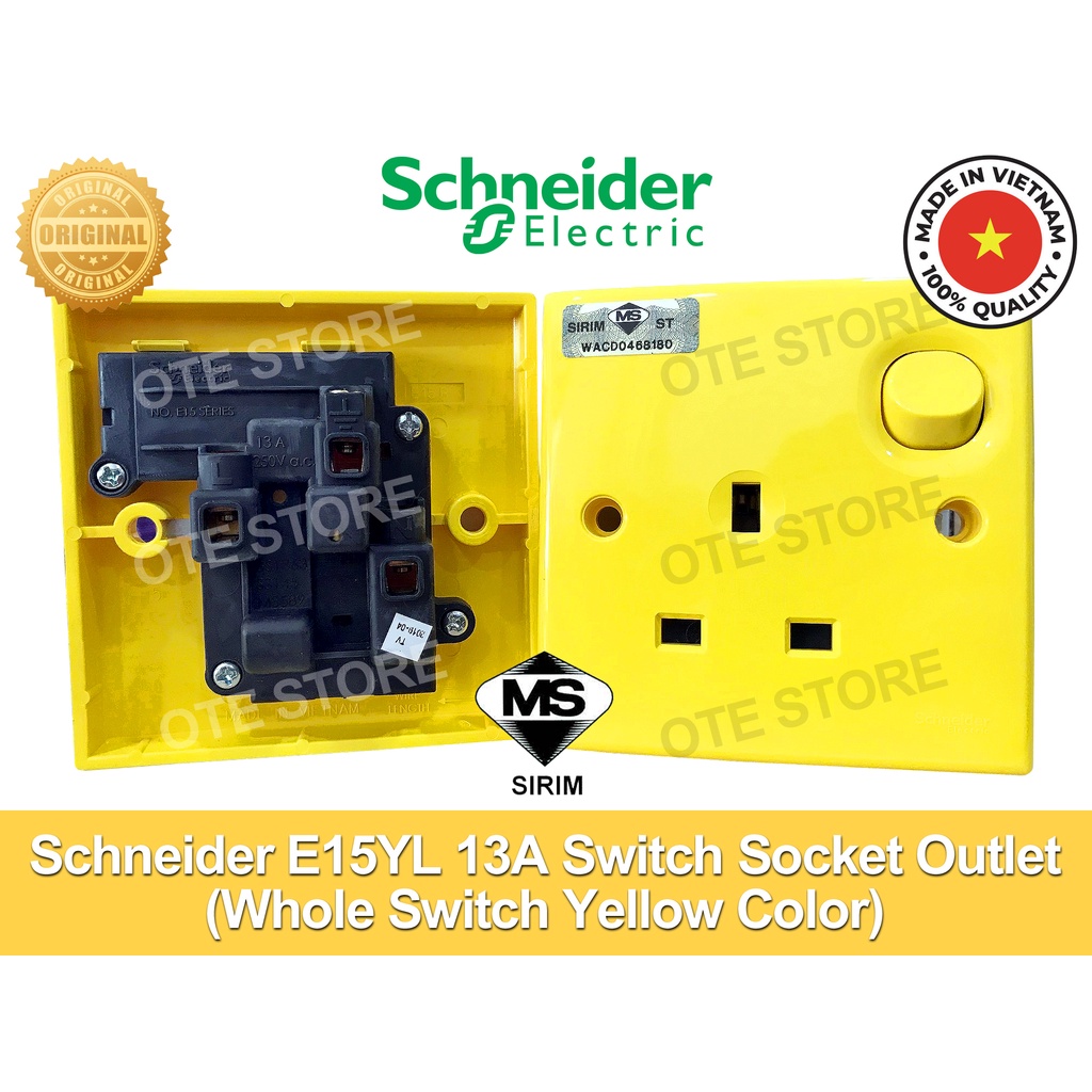 Schneider S-Class E15YL 13A Switch Socket Outlet (Yellow) Sirim
