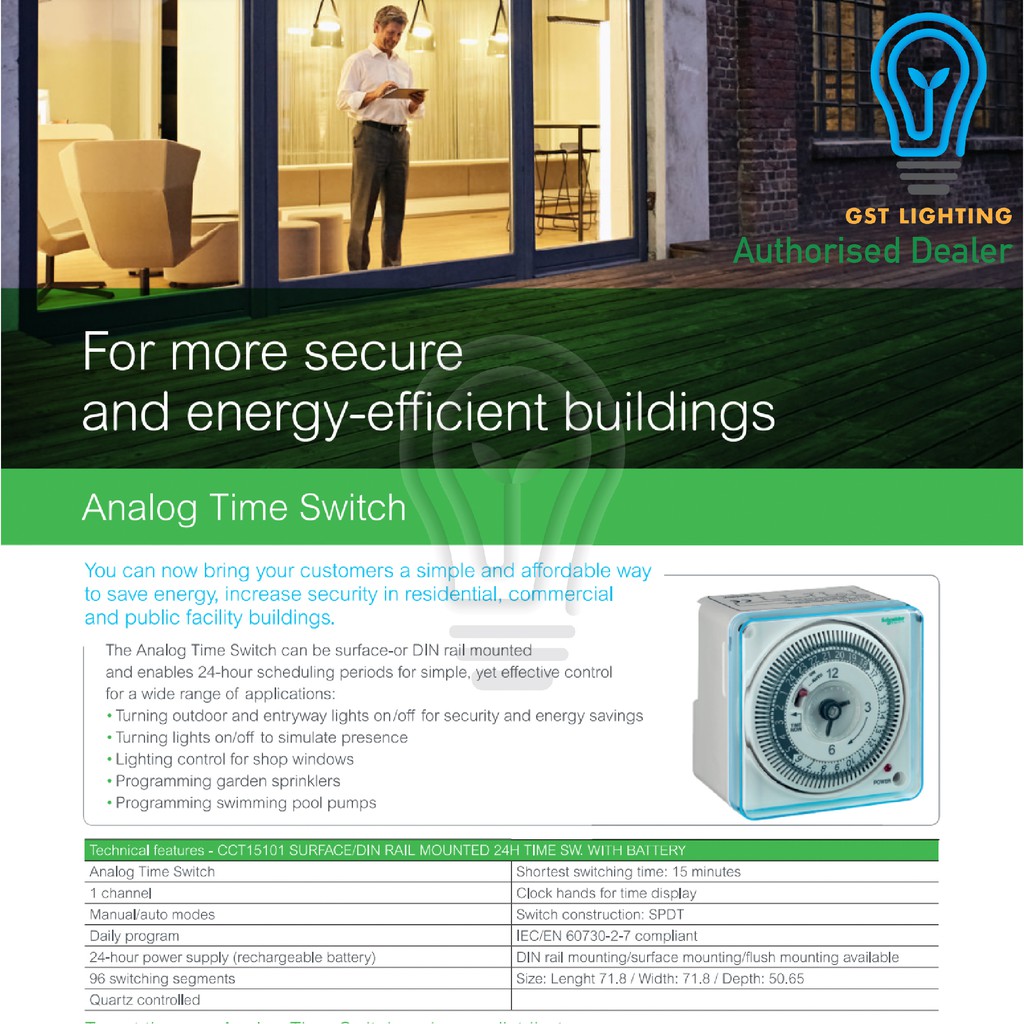 Schneider Timer CCT15101 Surface/DIN Mount 24 Hours Time Switch With Reserve Battery