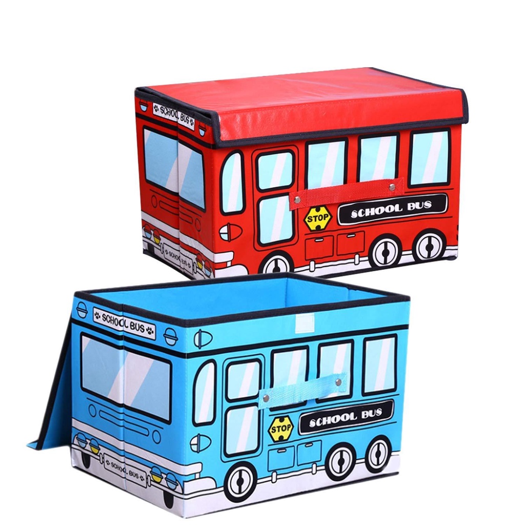 School Bus Collapsible Toy Chest for Kids Bedroom Organizing Books and Kid Clothes