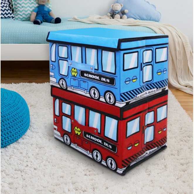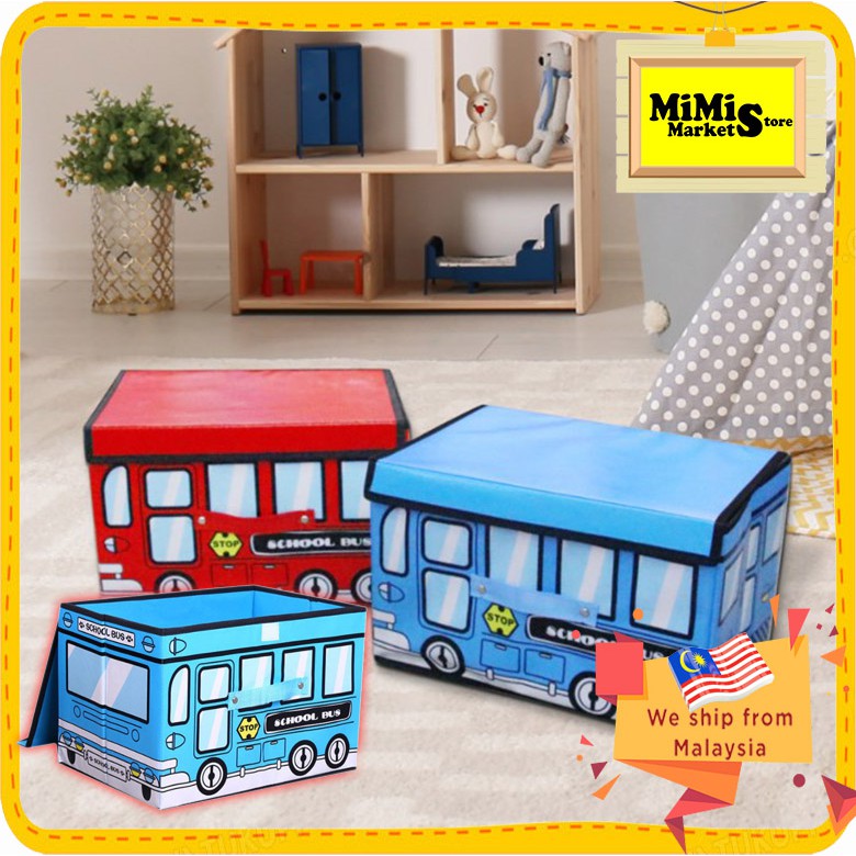 School Bus Collapsible Toy Organizer Box Folding Storage Toy For Kids Bedroom Organizing Books Toys and Kid Clothes 4357
