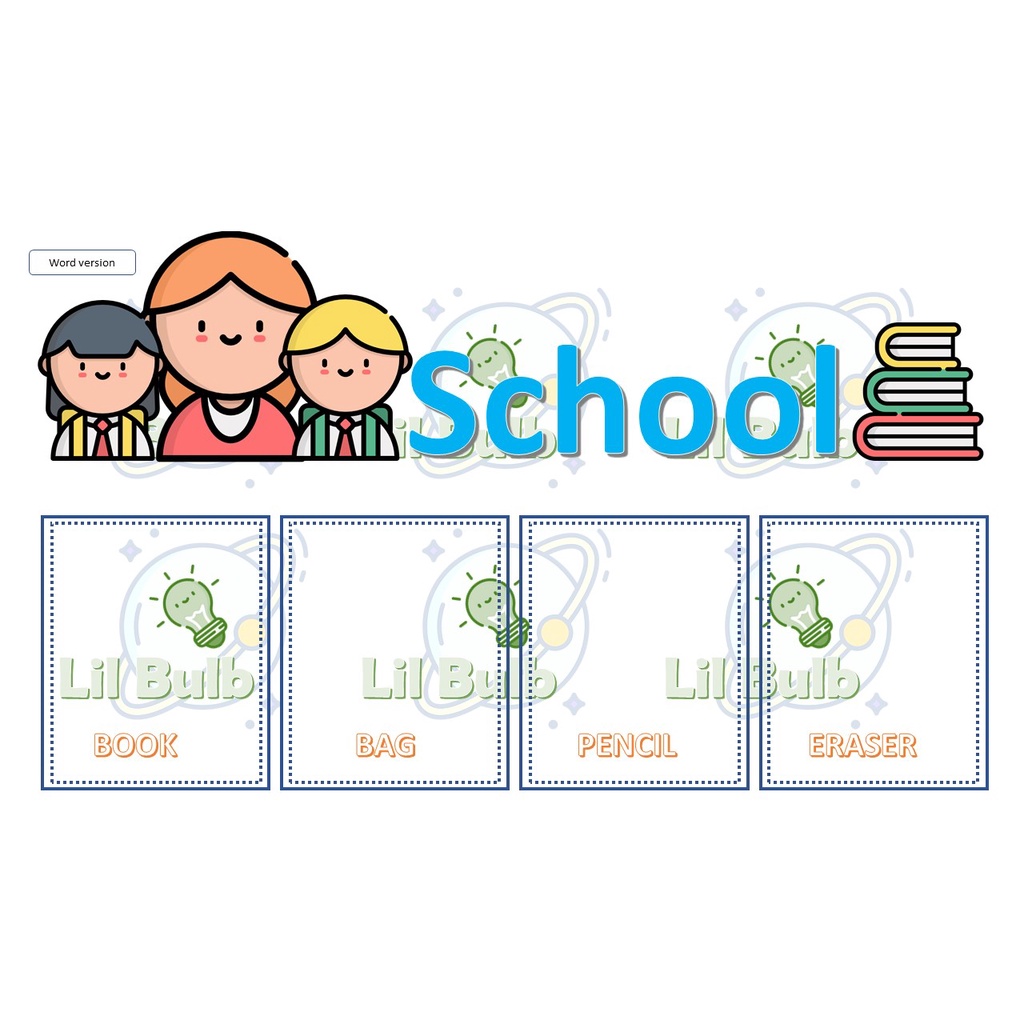 School Busy Book 3 in 1 (Flash Card + Busy Book - Picture & Word version) PDF ONLY