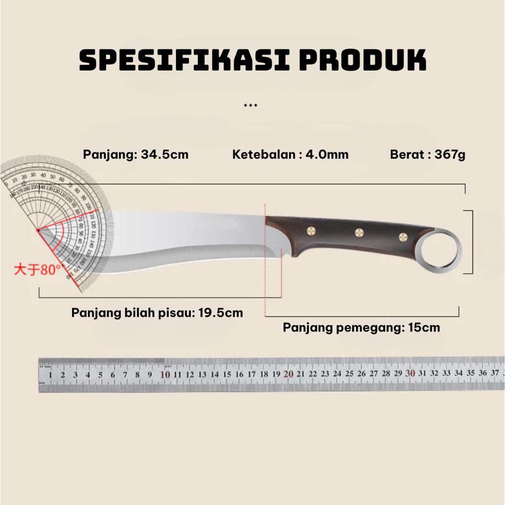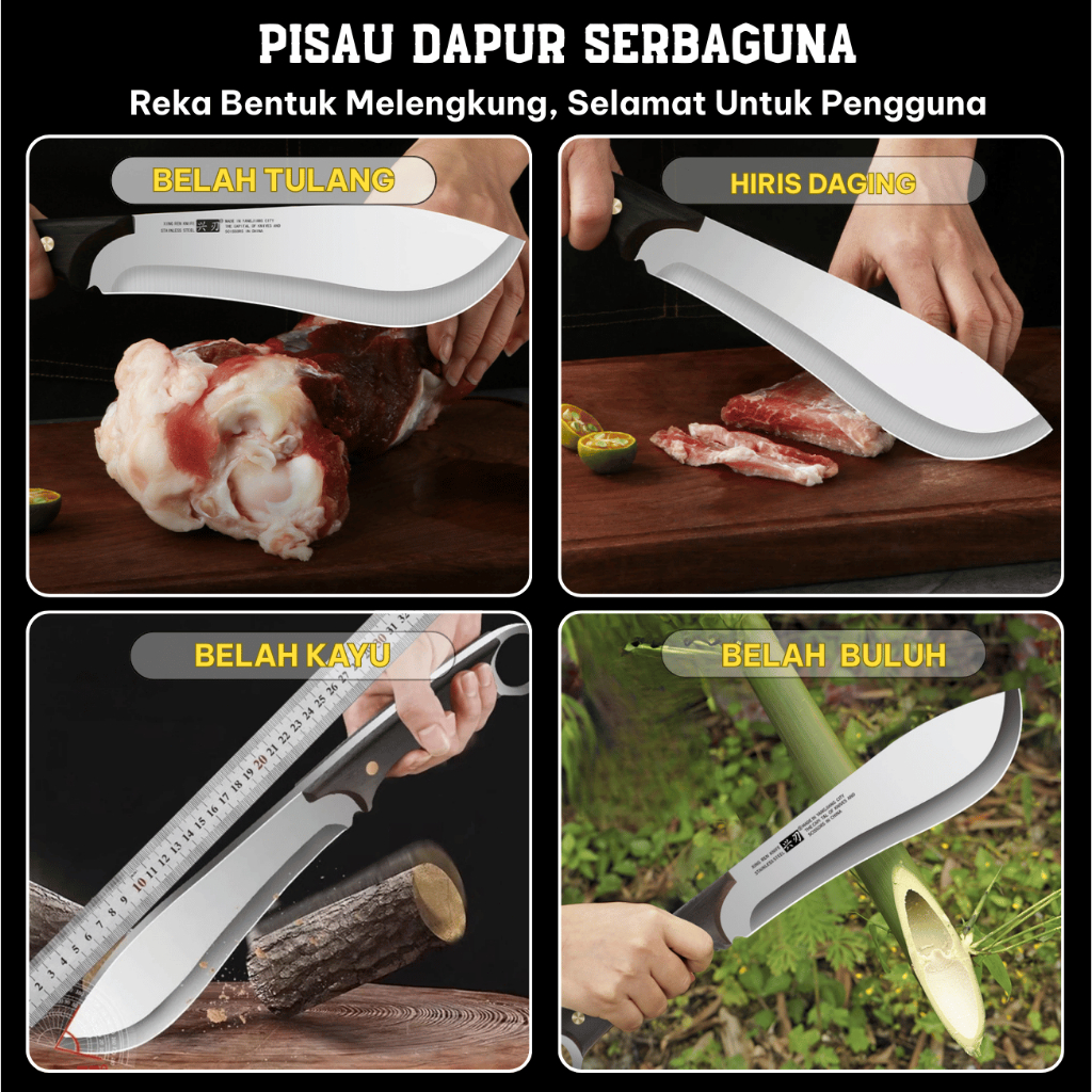 Kitchen Knife Japanese Knife Stainless Steel Knife Bone Cutter High Quality Wooden Handle, Free Leather Sheath