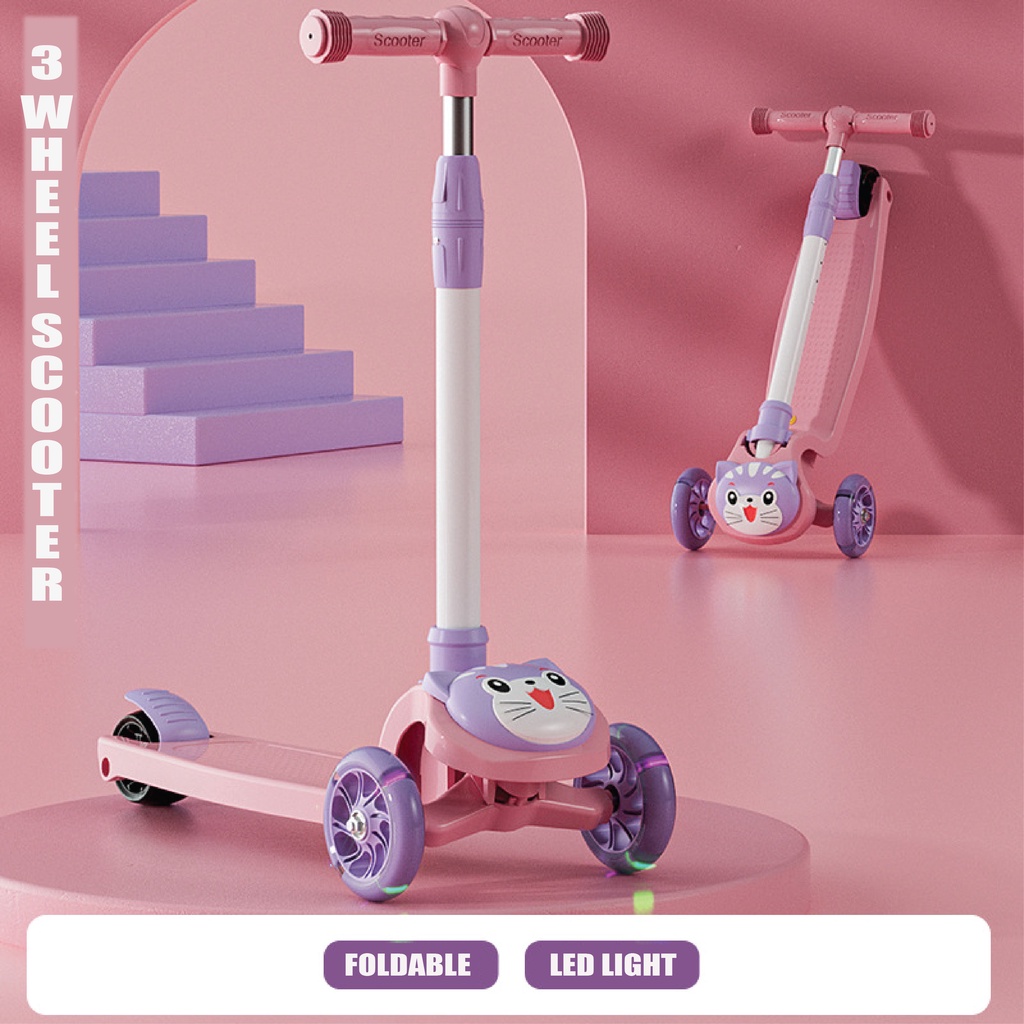 Scooter Children Folding Skateboard Kids Adjustable Height Flashing Light 3 Wheels Foot Scooters Scooter