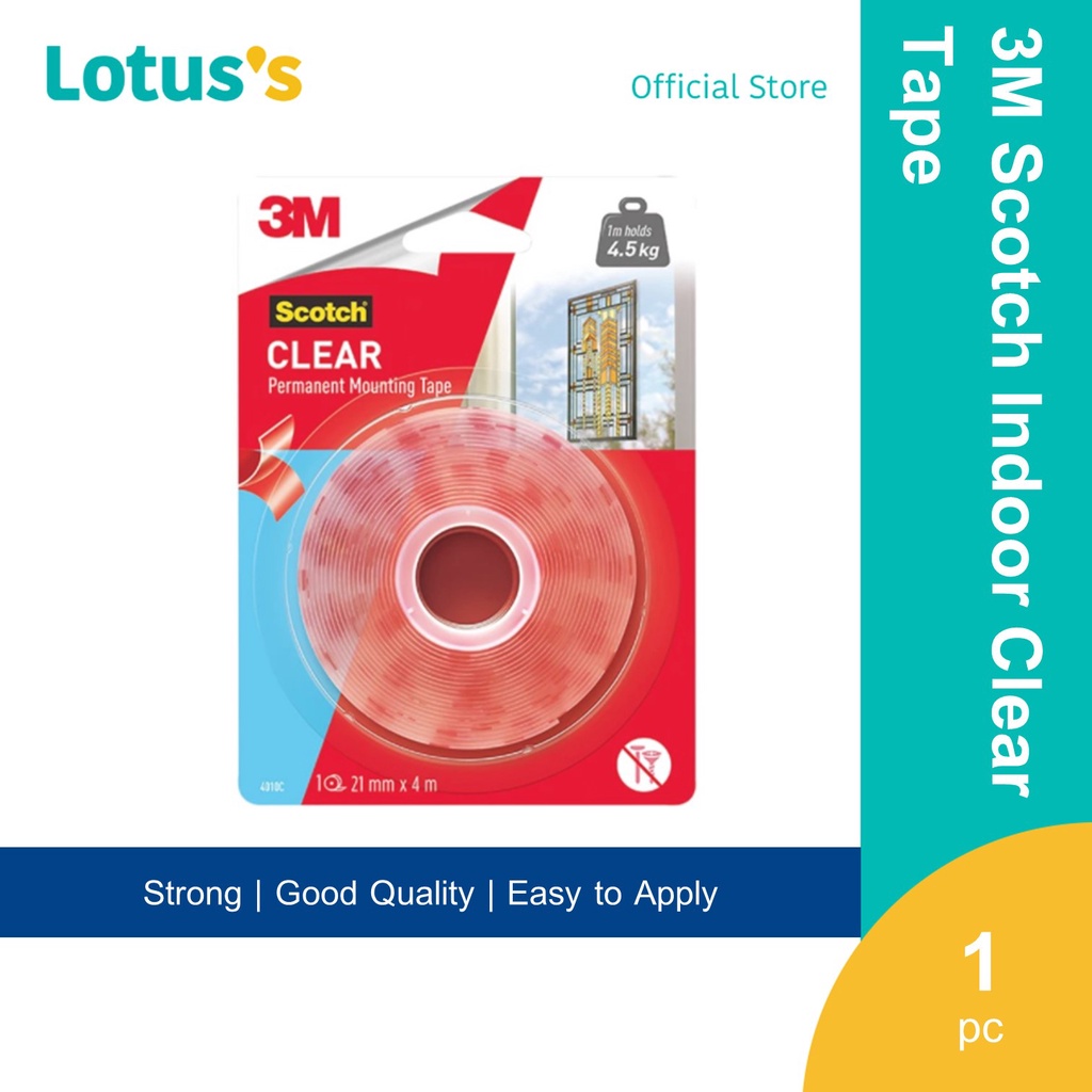 Scotch 3M 4010c Indoor/Outdoor UV Resistant Clear Tape ( 21mm x 2m) , Holds up to 4.5KG