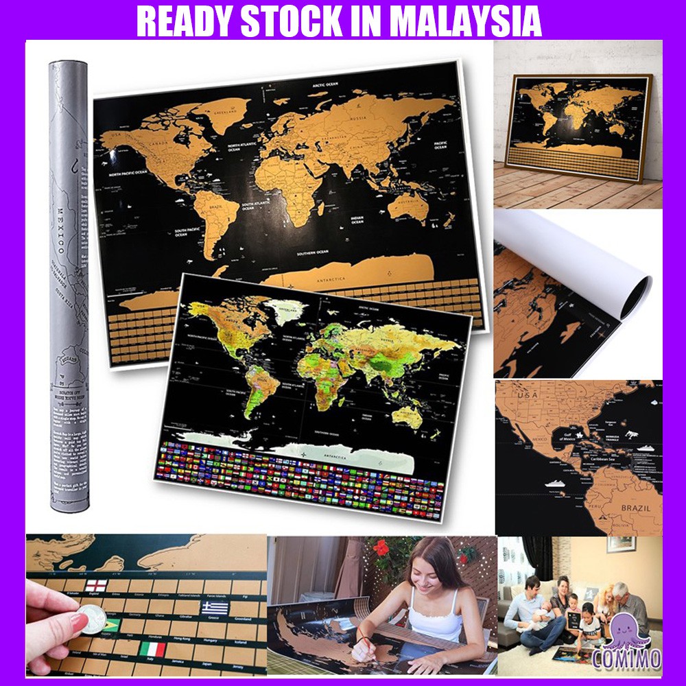 Scratch Off Educational World Map Travel Map Wall Map Poster with Boxed