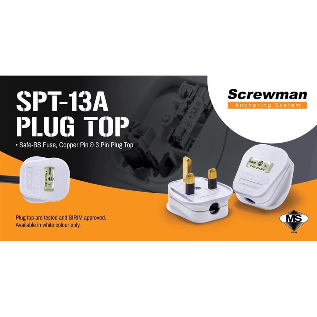 Screwman 13A Plug Top 3 Pin Plug with Sirim Approved - SPT-13A