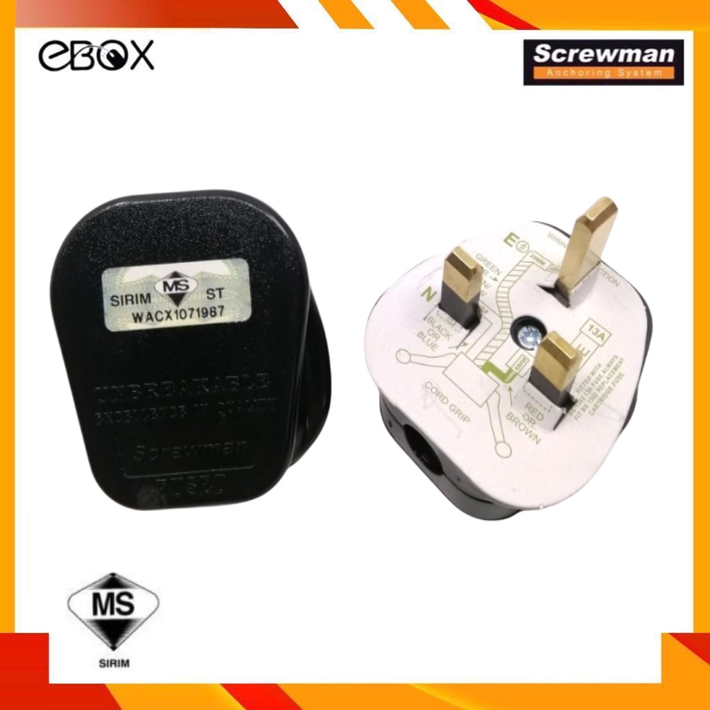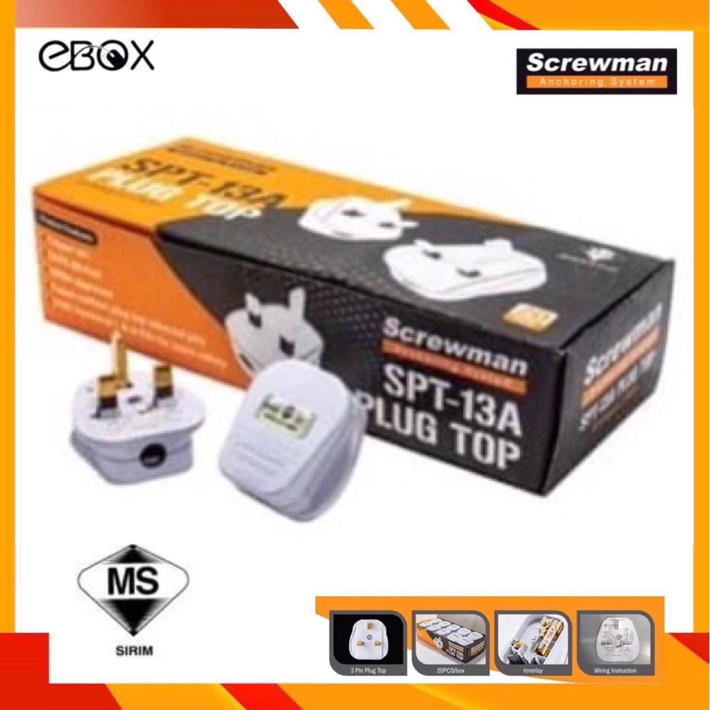 Screwman SPT-13A 3 Pin Plug Top with Sirim Approved