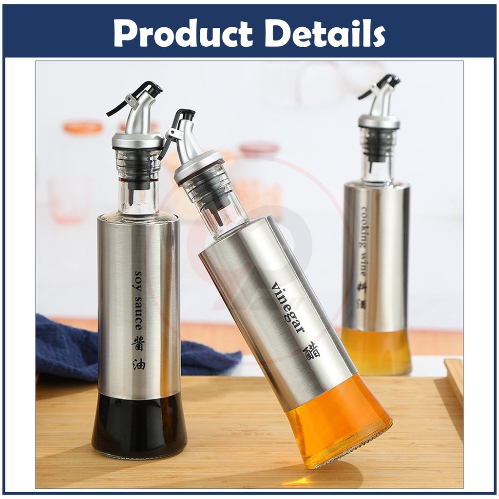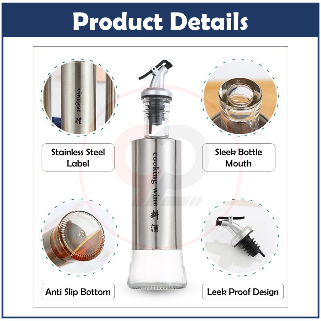 Seasoning Oil Dispenser Glass Condiment Bottle Storage Funnel 304 Stainless Steel Cooking Sauce Vinegar Botol Minyak Sos