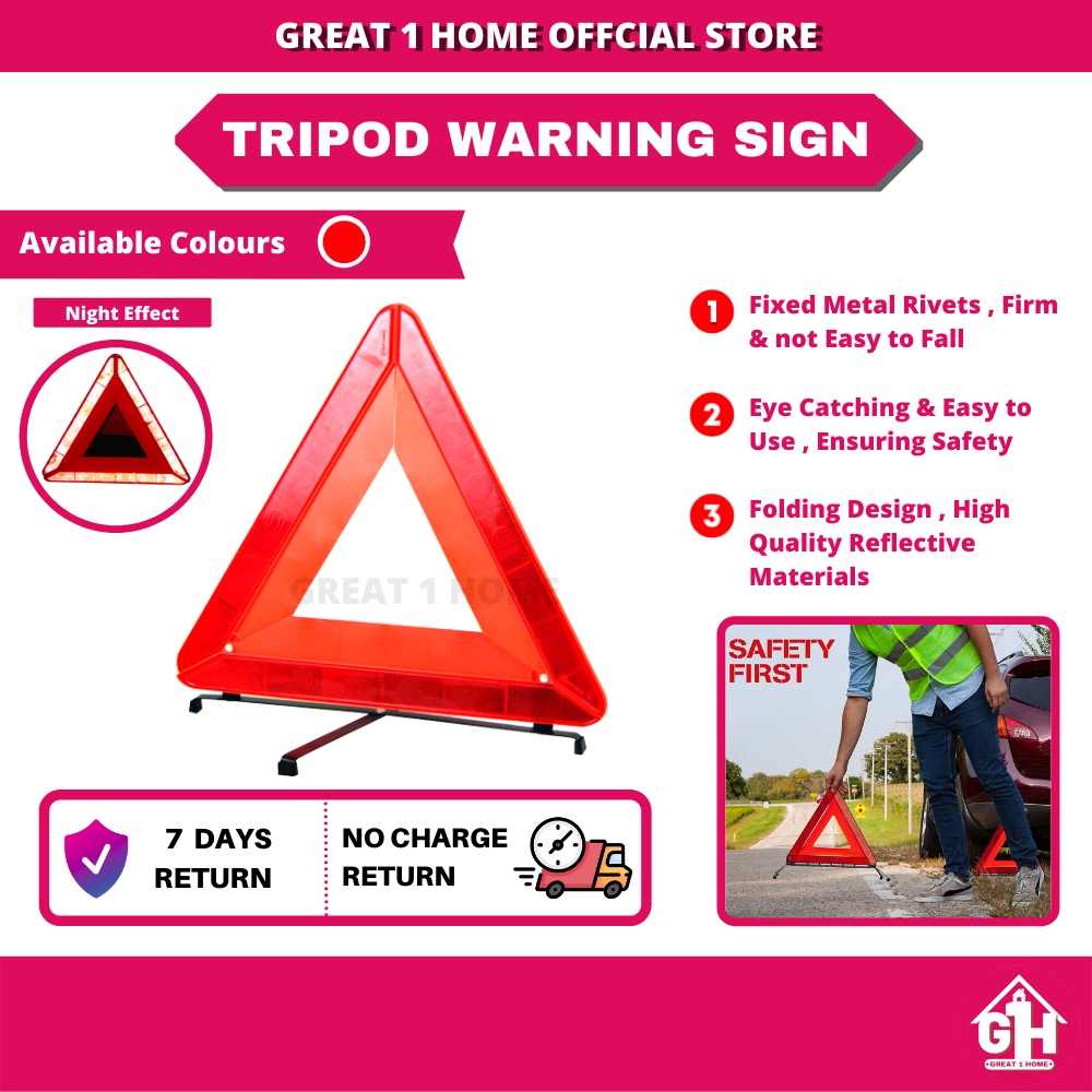 Segi Tiga Kecemasan/Car Tripod Warning Sign Foldable Triangle Emergency Breakdown Reflective Road Stop Sign Board Hazard