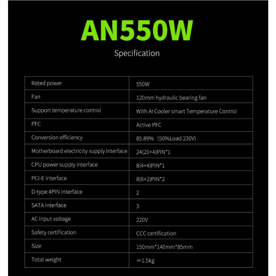 Segotep AN550W (550W) / AN650W (650W) / AN750W (750W) 80 PLUS Power Supply PSU / PSU Gaming Power Supply