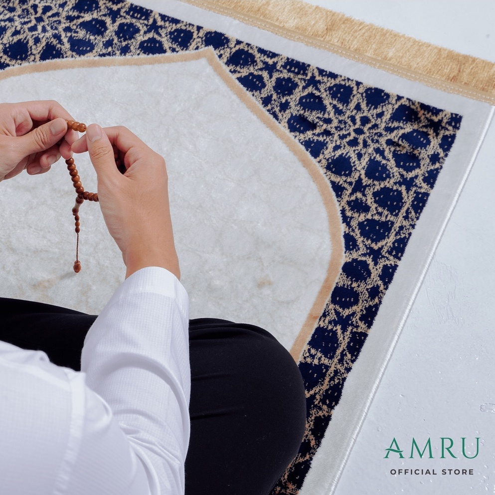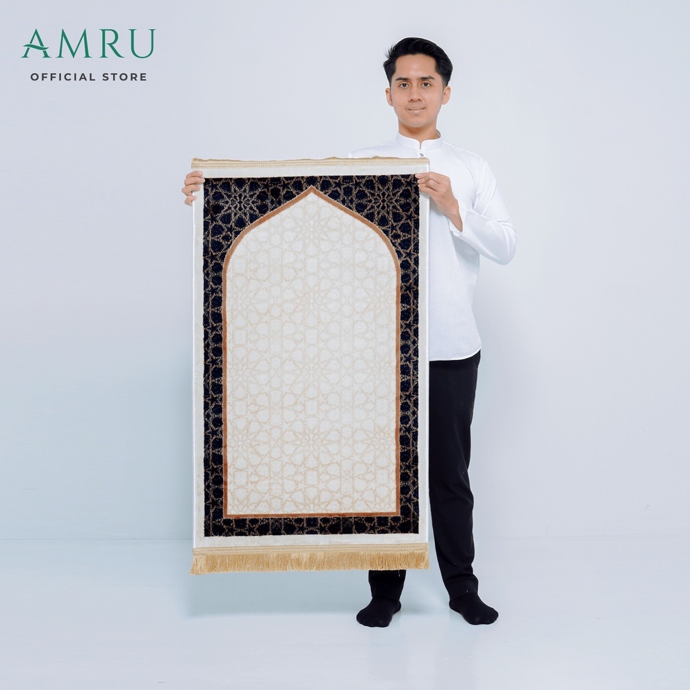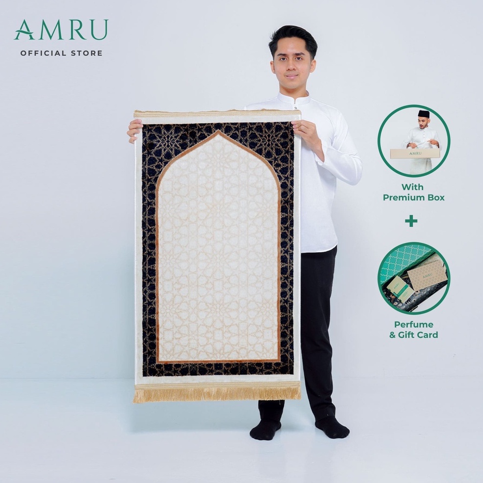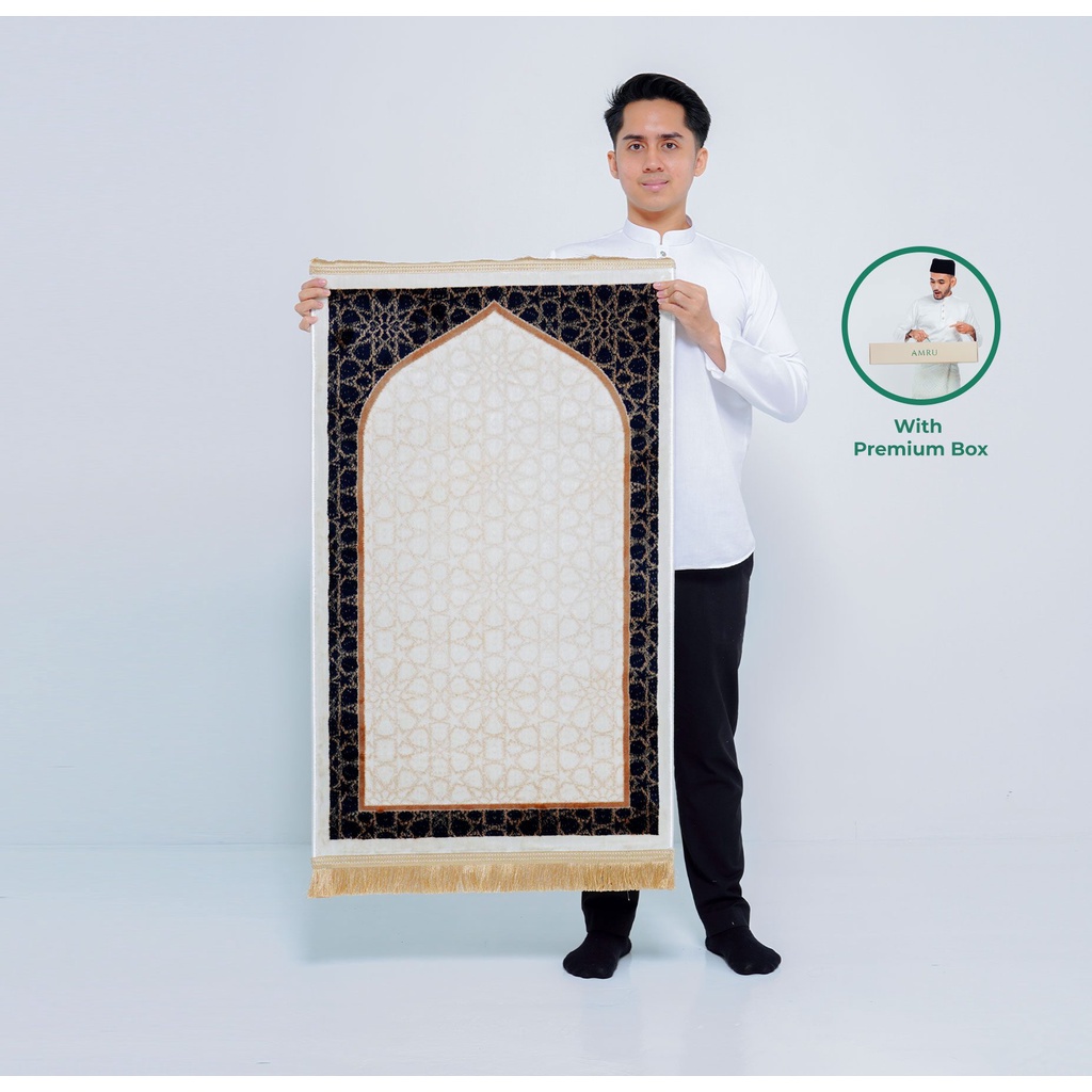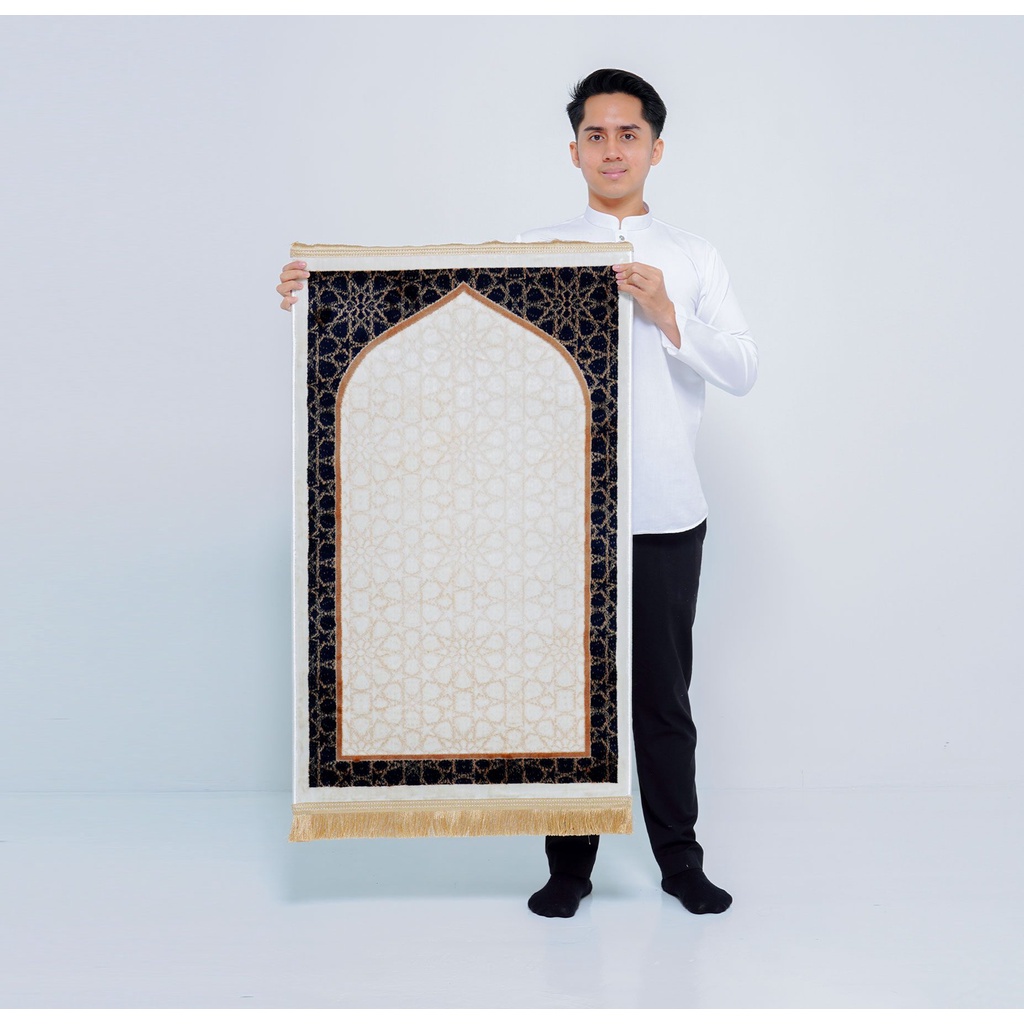 Sejadah Gebu Tebal Exclusive Gift Set Hadiah Hantaran Cenderahati Kahwin Prayer Mat Turkey - Safiye Beige Navy Geometric