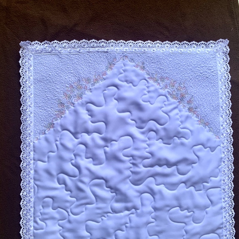 Sejadah Putih Besar Sulam Bunga Renda Eksklusif Telekung NUN