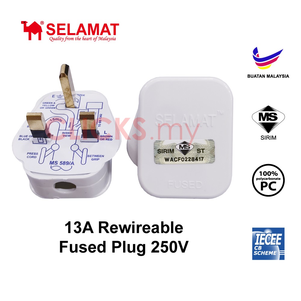 Selamat 13A 1 Gang Switched Socket Outlet 250V