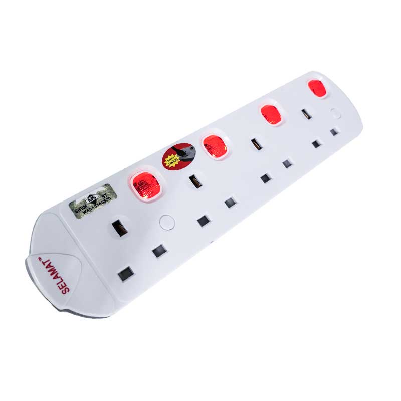 Selamat 4 Gang 2Meters Surge Protection Extension Trailing Socket [SIRIM APPROVED]