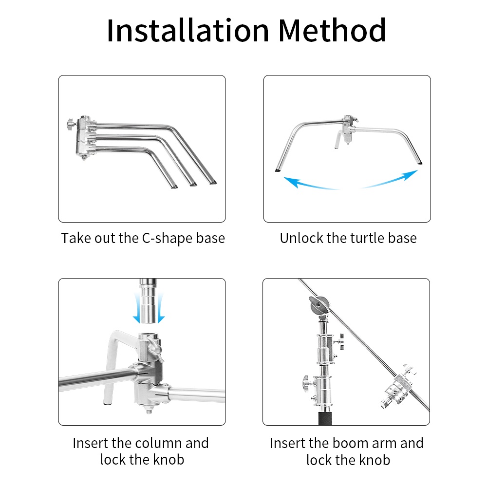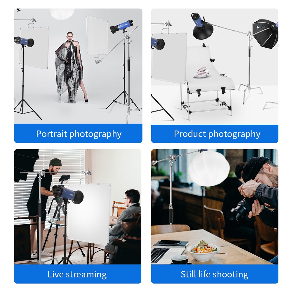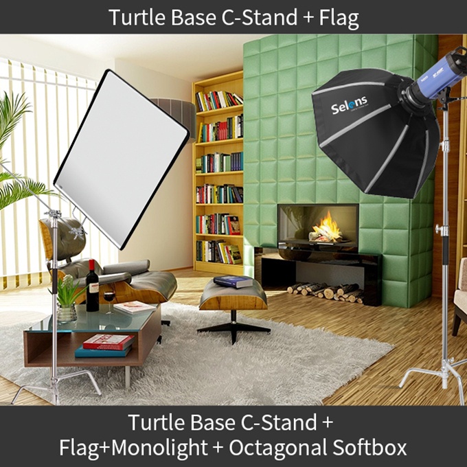 Selens Heavy Duty Light Stand C Stand with Rubber Base for Photography Adjustable Reflector Stand with Holding Arm 2PCS Grip