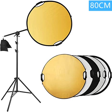 Selens Photography Reflector Holder Stand Kit 110cm 5-in-1 Collapsible Light Reflectors with 2M Stand Swivel Boom Arm Stand and Sandbag for Photo Video Studio Lighting